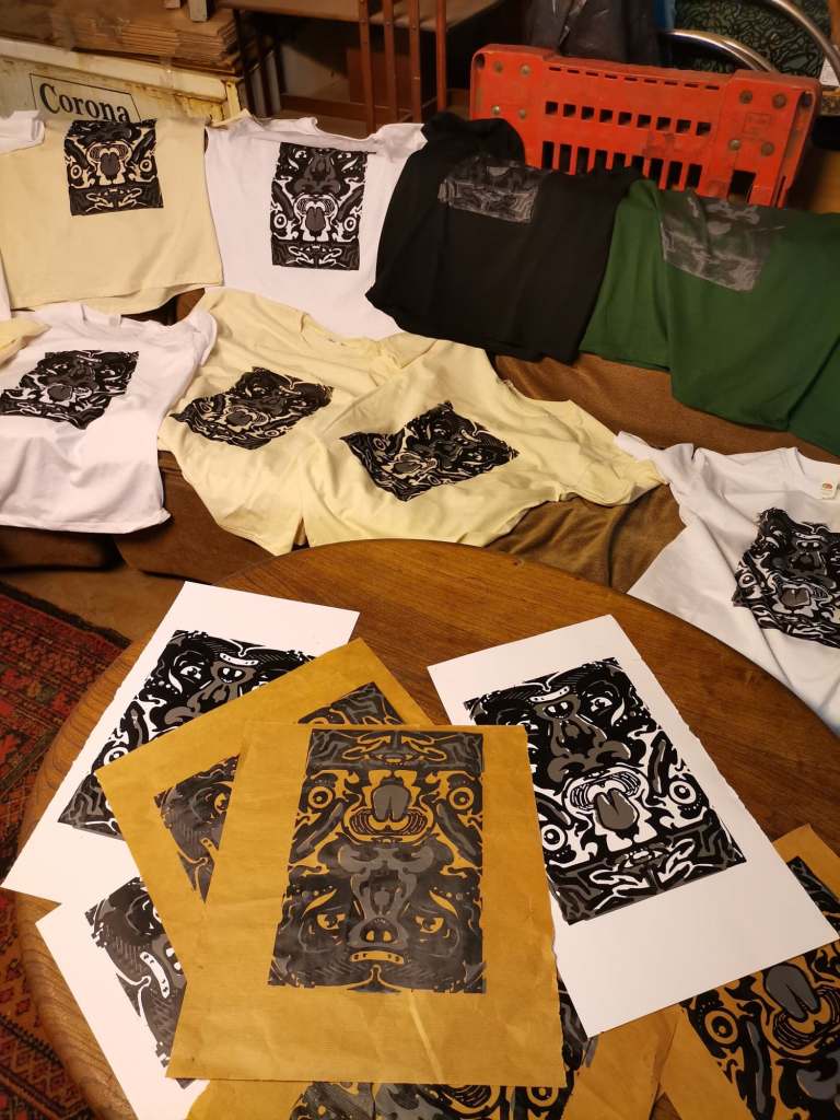 * Alle materialen worden voorzien en zijn inbegrepen bij de workshop (papier, één t-shirt, inkt en gebruik zeven).